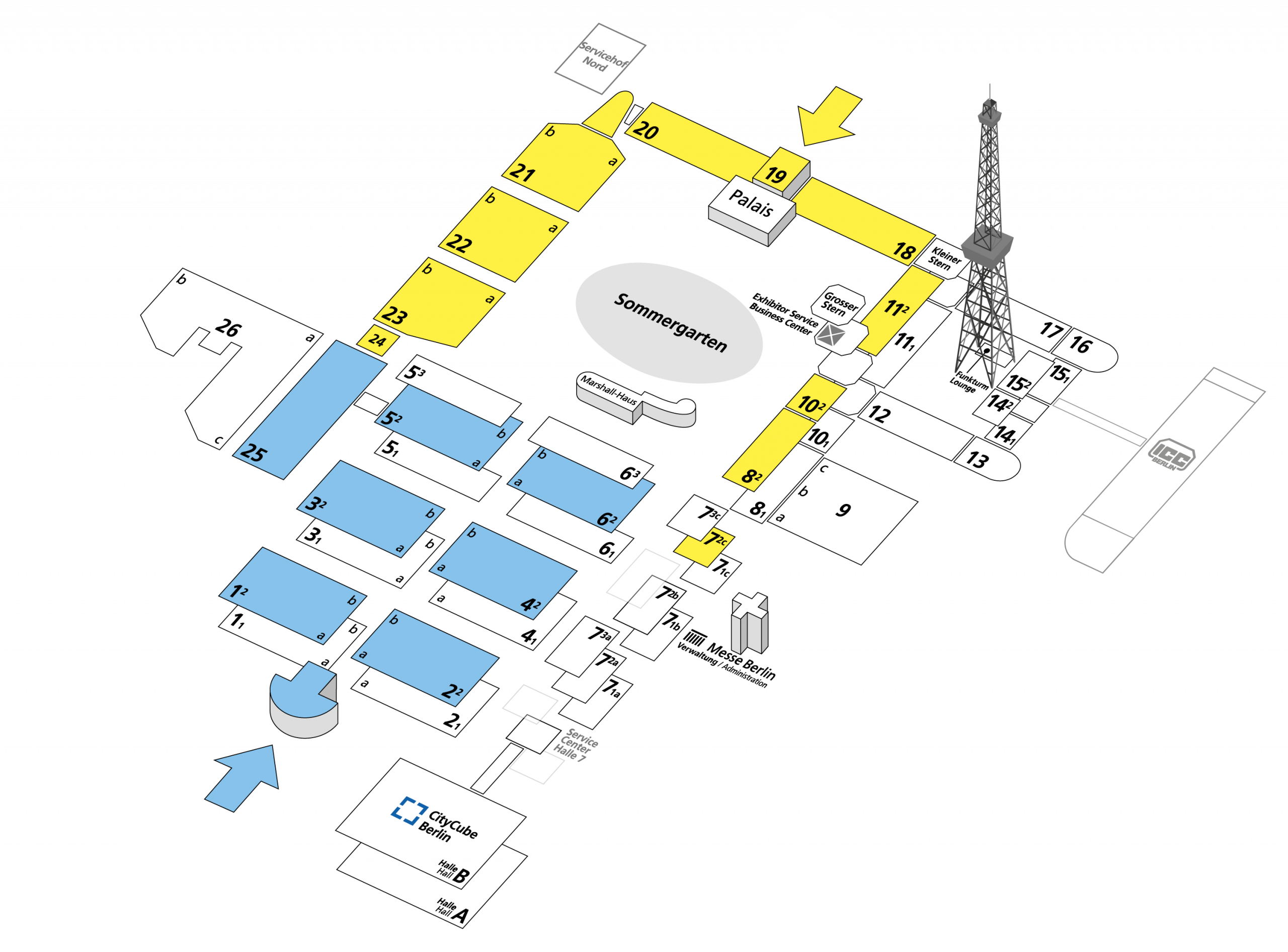 Das Messegelände Berlin ist hervorragend an das Berliner Netz öffentlicher Verkehrsmittel angebunden. Taxistationen, U-Bahnhöfe, S-Bahnhöfe und Bushaltestellen befinden sich an unseren Eingangsbereichen.